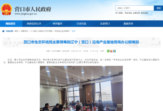 利用“营口市生态环境局”官网、“营口生态环境”微信公众号等新媒体和市局一楼大厅LED公告显示屏更新发布生态环境领域的政府信息内容,积极开展线上“环保设施向公众开放”等活动。5月16日,营口市政府官网政务公开日专栏刊发了“营口市生态环境局主要领导到辽宁(营口)沿海产业基地现场办公解难题”的相关信息,充分体现了市生态环境部门立足新发展阶段,主动作为、靠前服务,助力全市经济高质量发展。