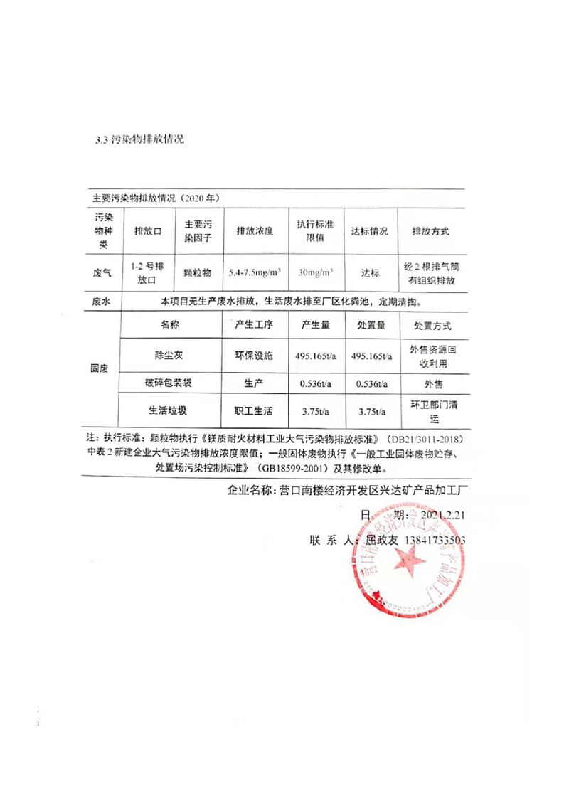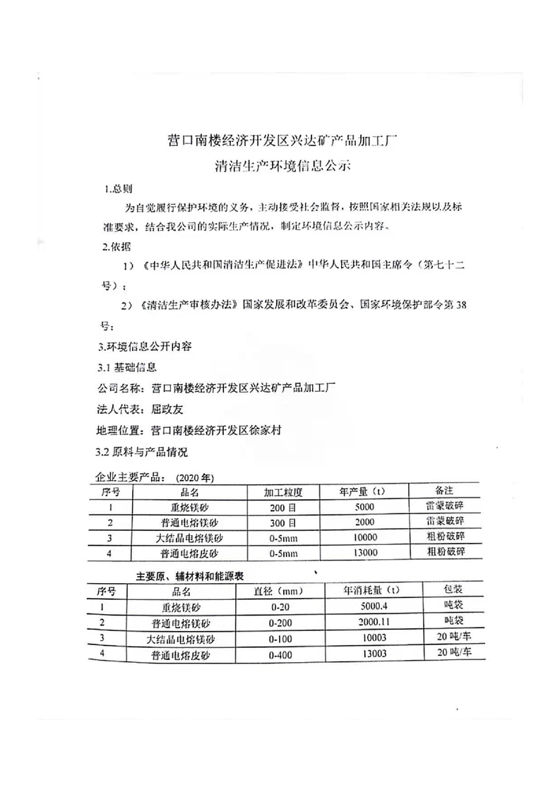 营口南楼经济开发区兴达矿产品加工厂-清洁生产信息公示