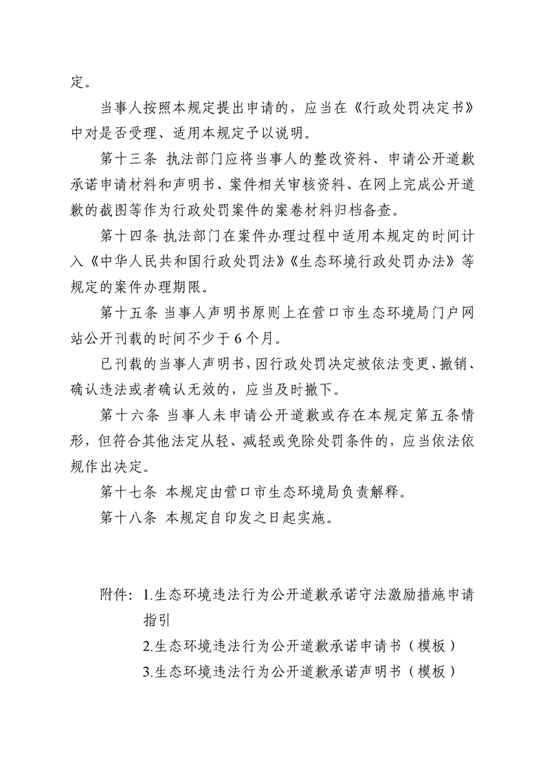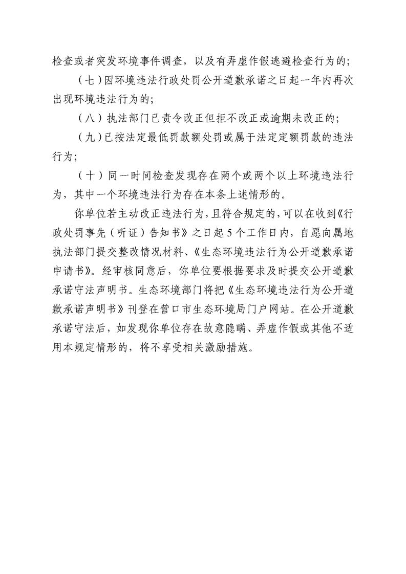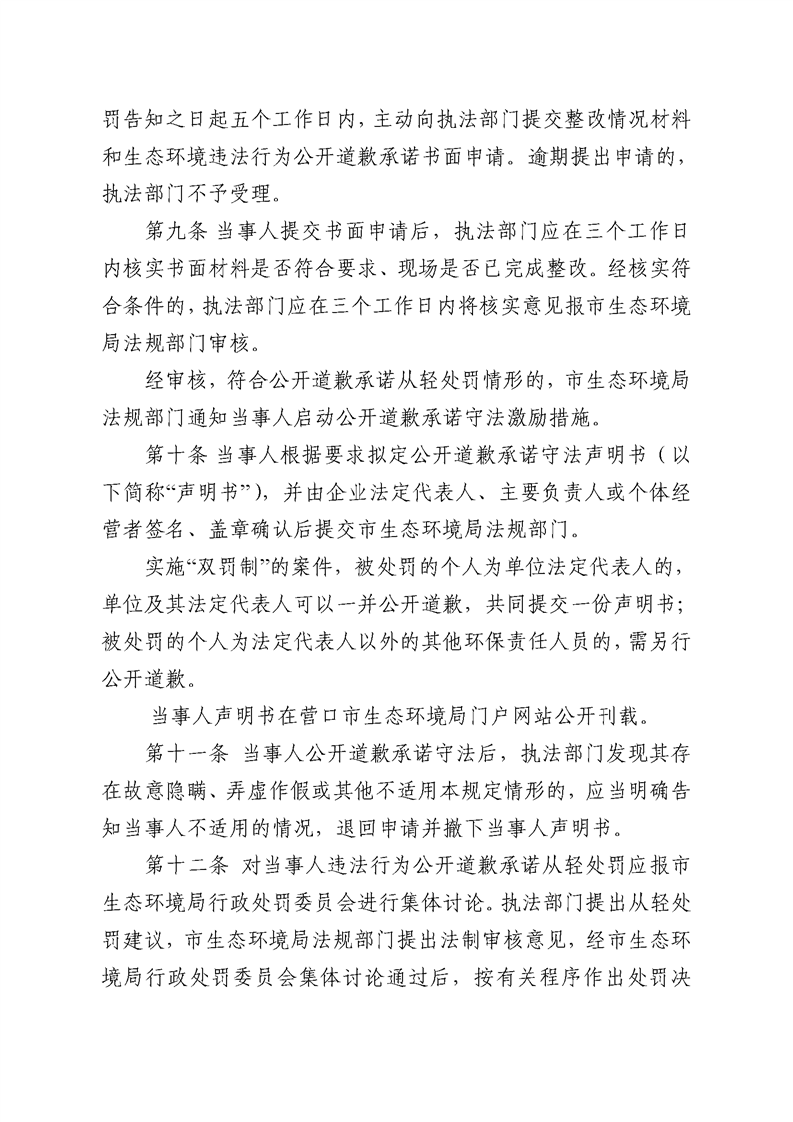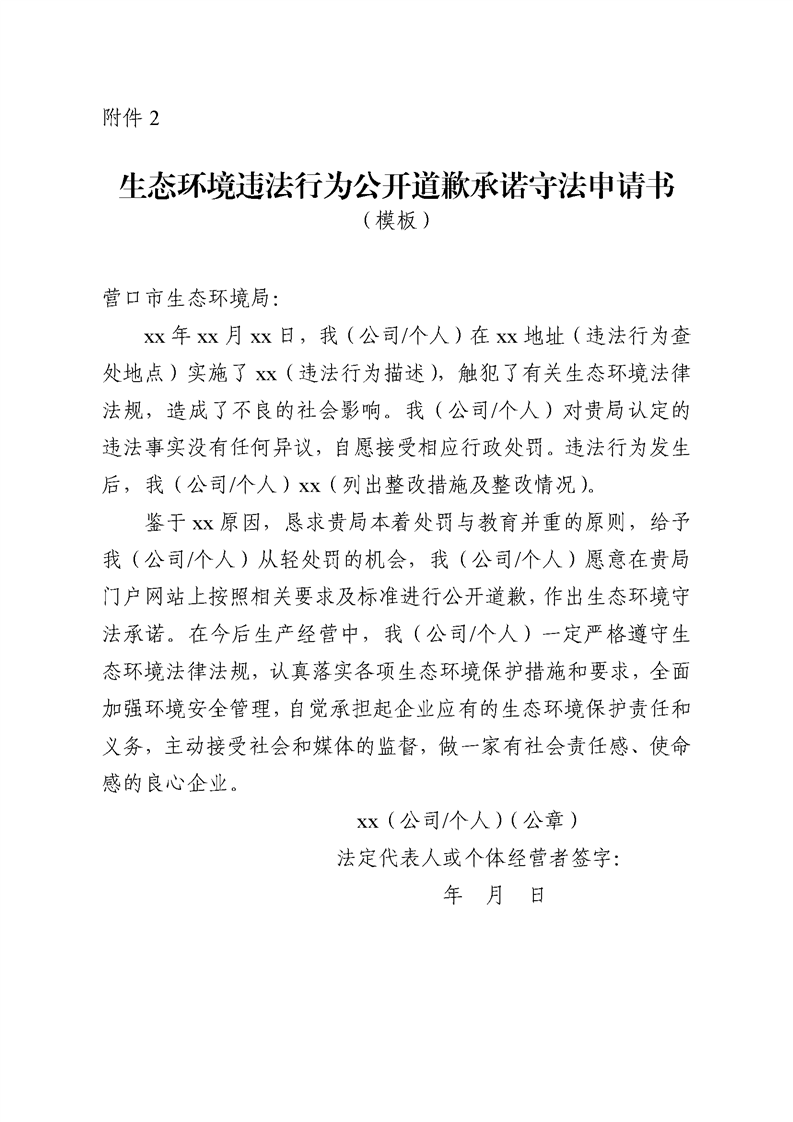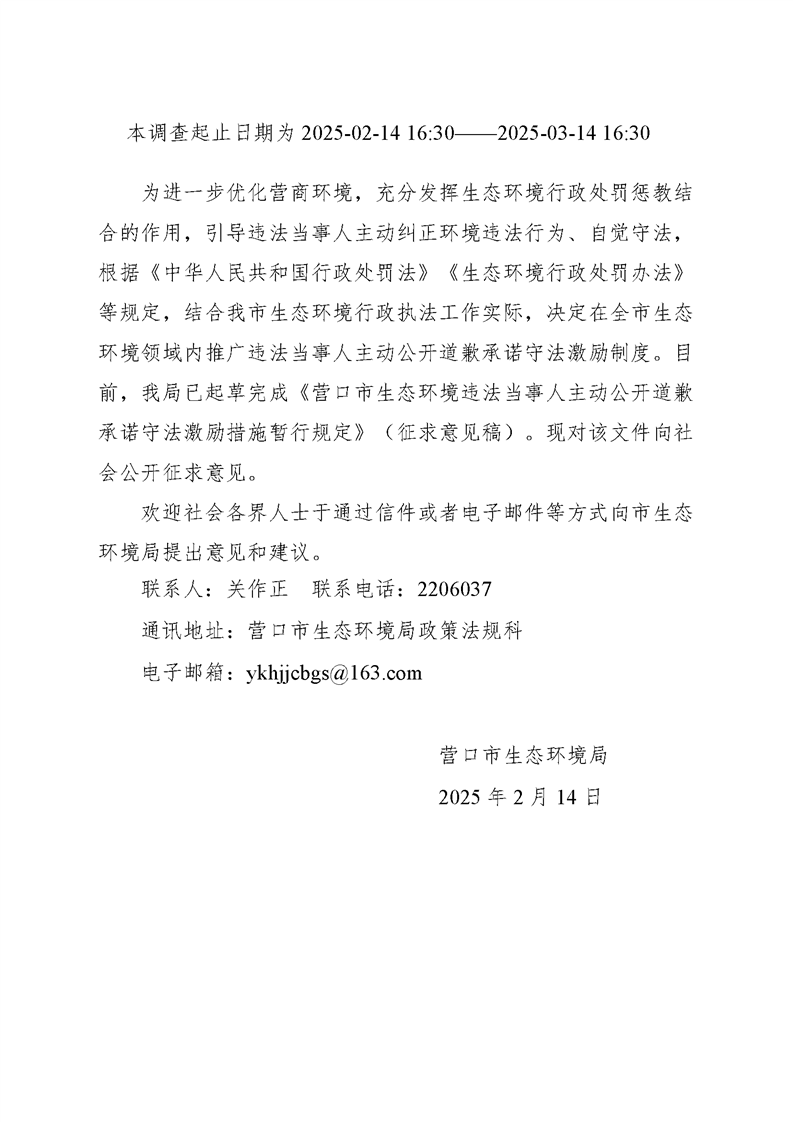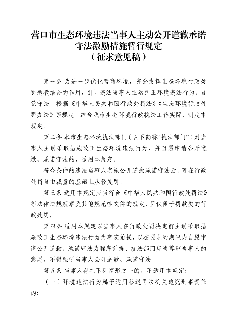 【征集中】关于《营口市生态环境违法当事人主动公开道歉承诺守法激励措施暂行规定》(征求意见稿)公开征求意见的公告